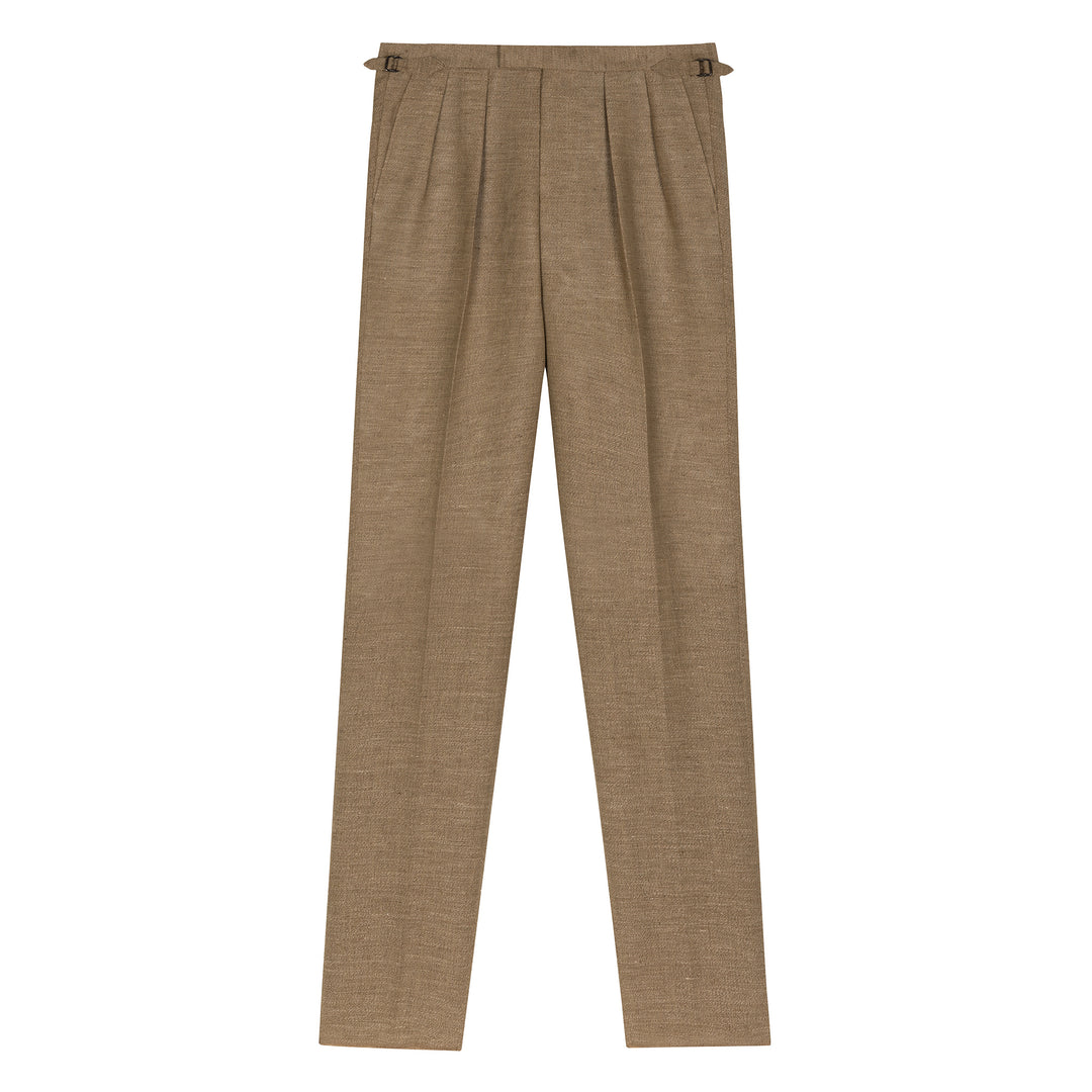 Like all Kit Blake trousers, the trousers do not require a belt due to having side-adjusters. We recommend that these trousers are worn with a turn-up cuff, but it is up to the client’s preference. Note all of the trousers come unfinished to have them altered to your desired length. If you are in-between sizes, we would recommend going up a size and pulling the adjusters in a little closer as needed.