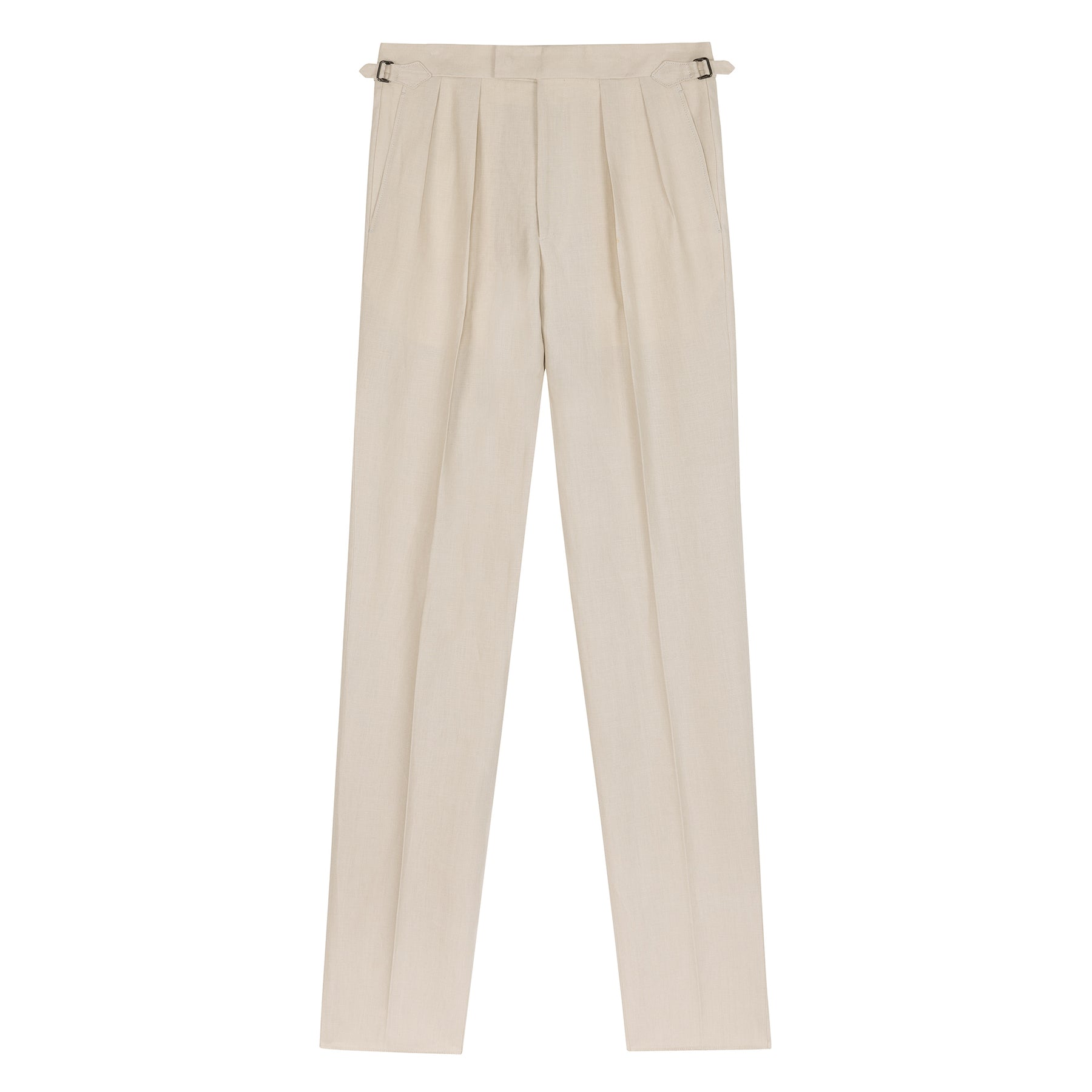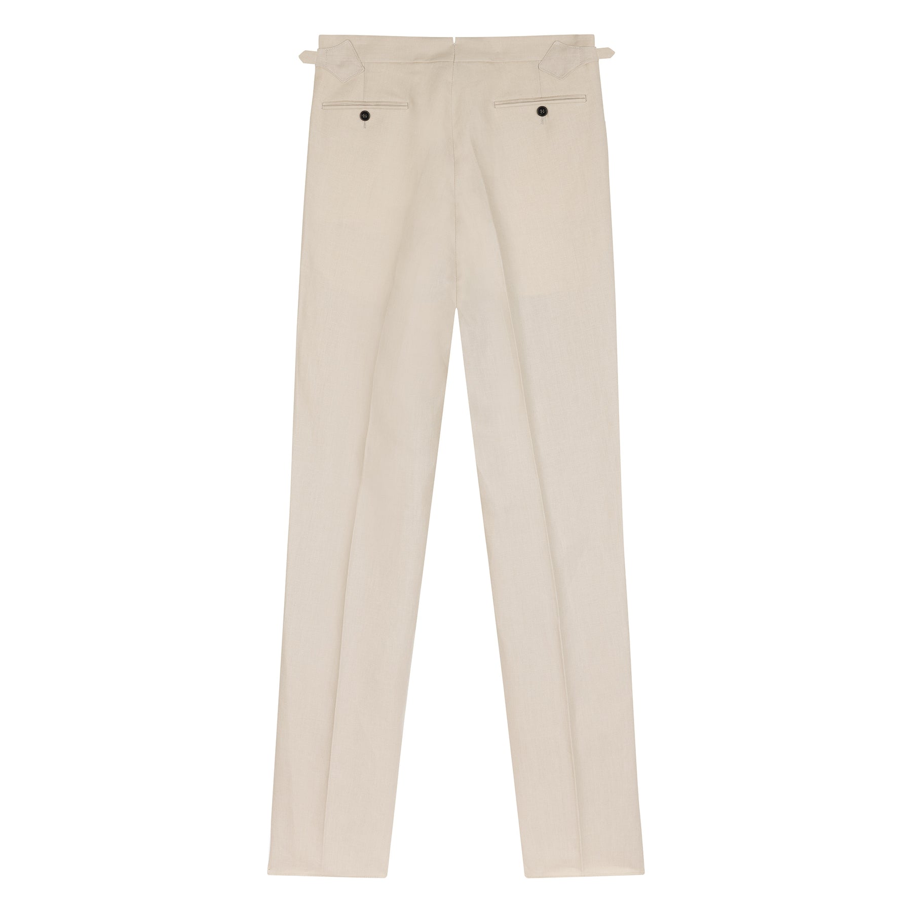 All our trousers feature our signature side-adjusters, rubberised brace buttons to grip your shirts, and are made in Italy.