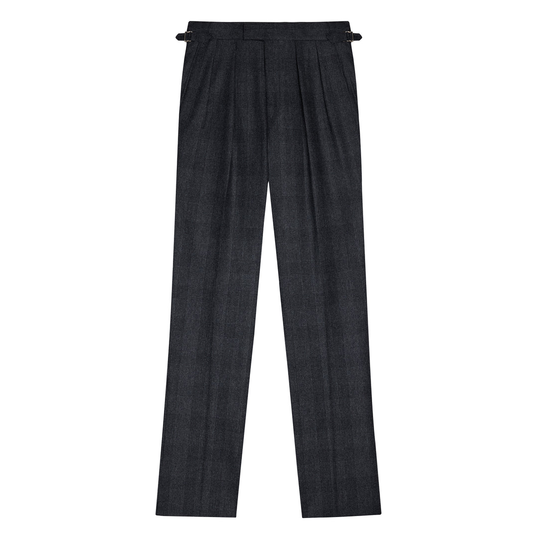 Aleks Dark Grey Check Wool Flannel Trousers