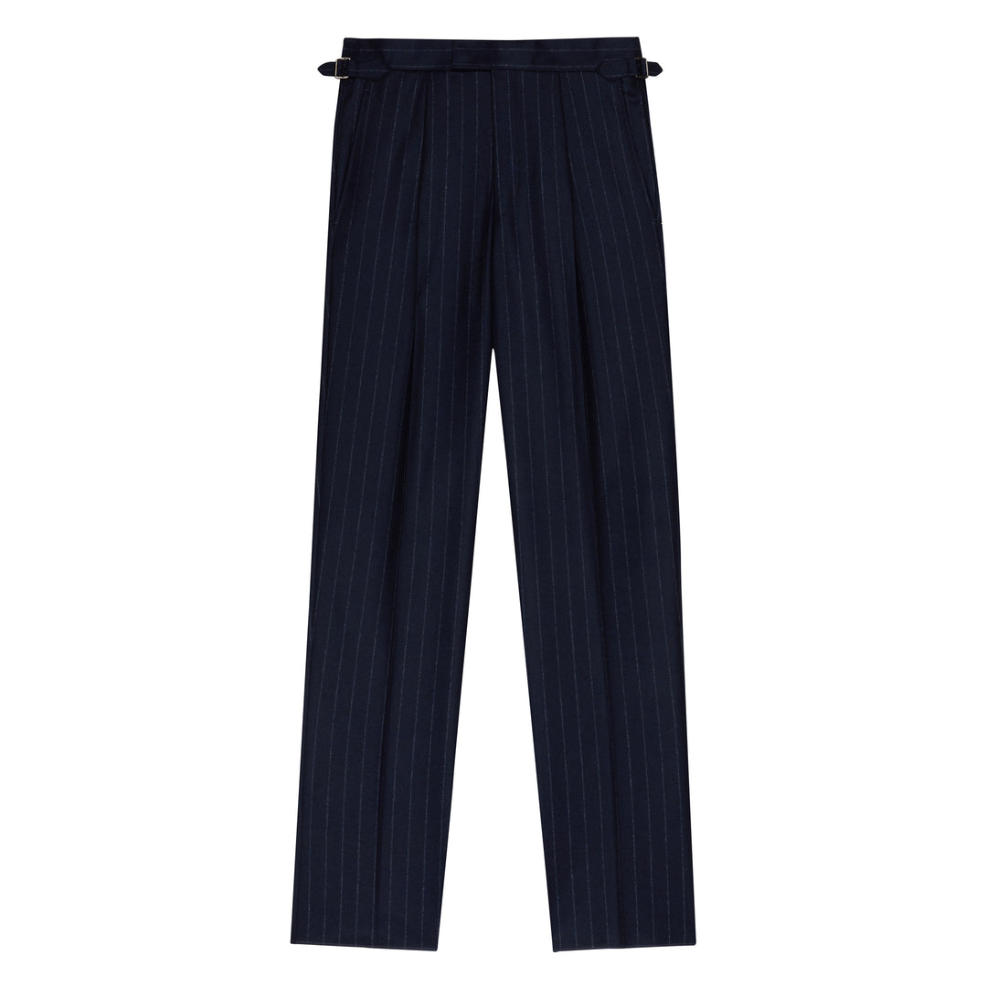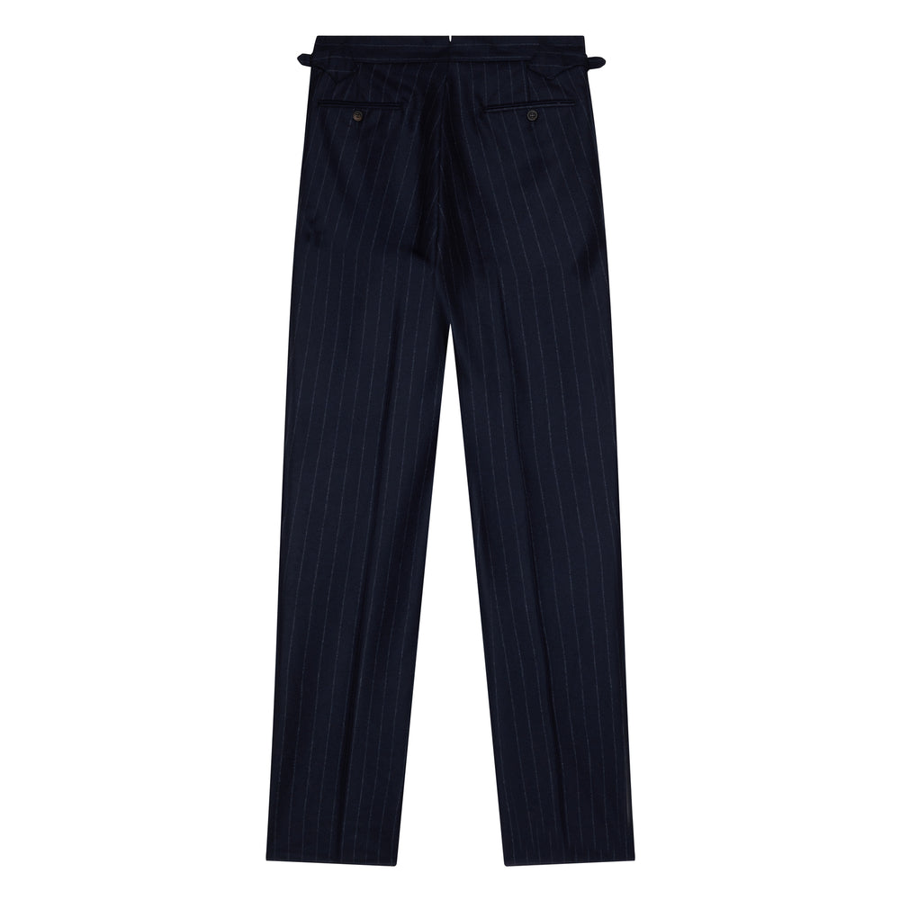 Duke Navy Chalkstripe Wool Flannel Trousers