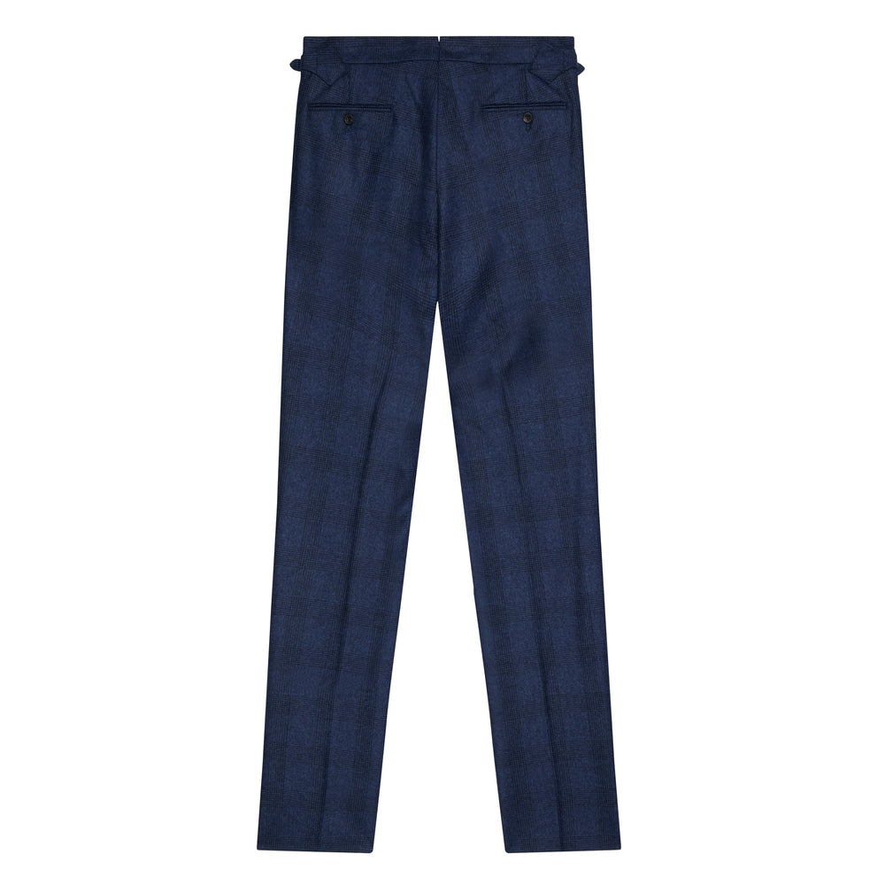 Grant Navy Check Wool Flannel Trousers